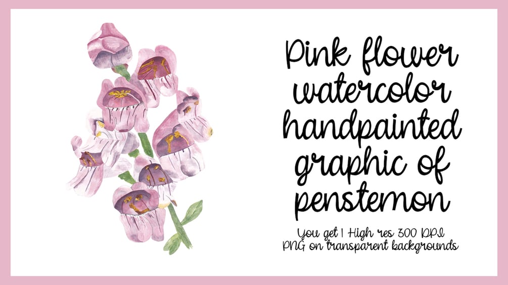 Pink Flower Watercolor Floral Botanical Handpainted Penstemon flower graphic clipart