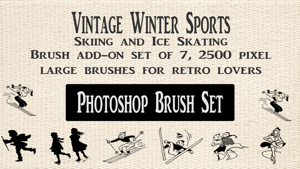 Add playful, old-world winter charm to your designs with this Vintage Winter Sports Photoshop Brush Set. Featuring nostalgic skiing cartoons and elegant ice skater silhouettes, this collection captures the joy and motion of classic winter sports in a timeless retro style.